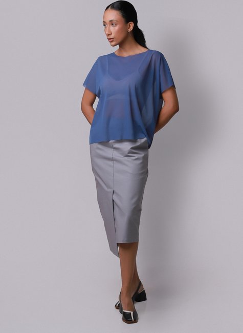 Top Feminino de Tule Sem Manga Heid Azul – Estilo e Versatilidade Atemporal